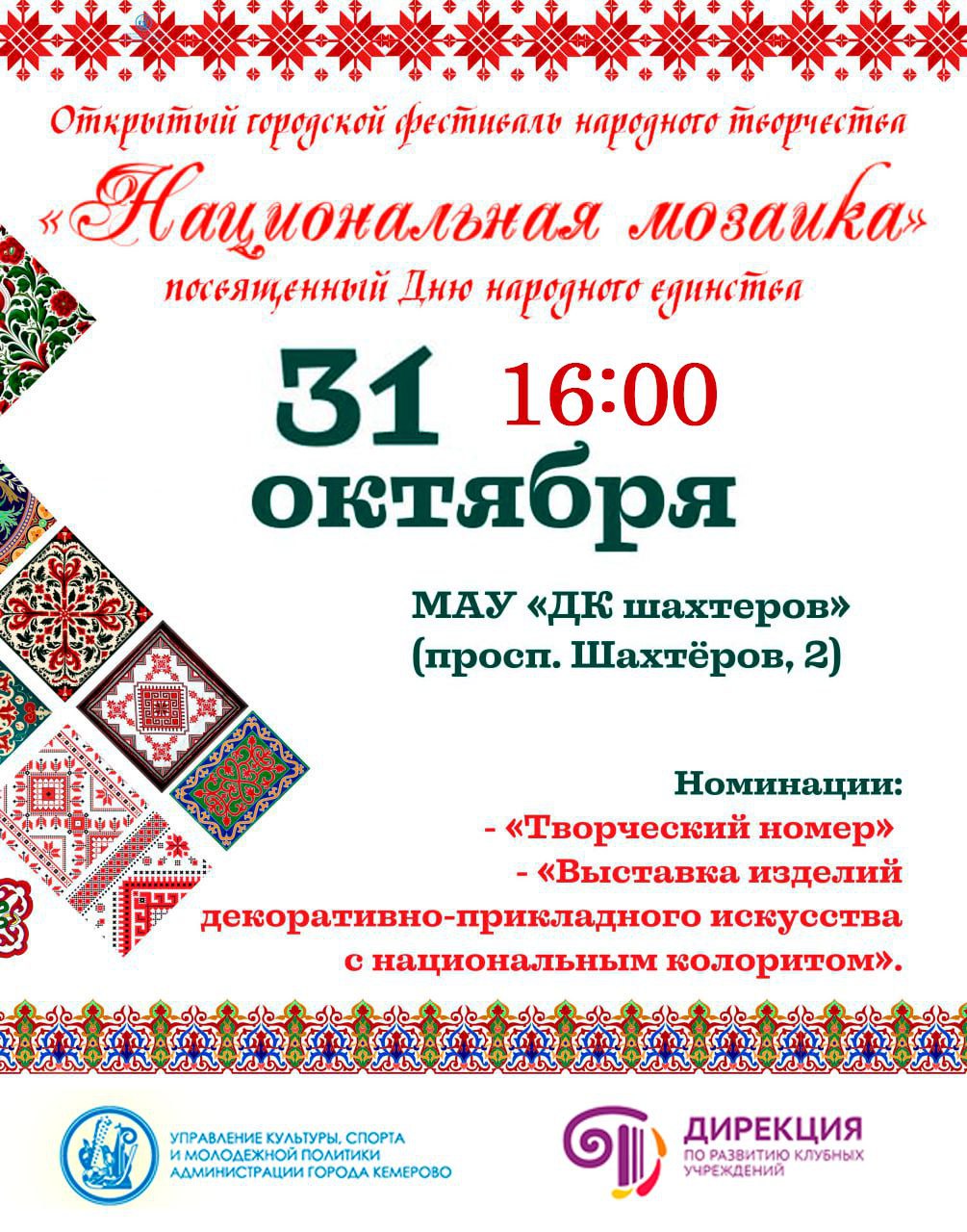 во Дворце культуры шахтеров пройдет Открытый городской фестиваль «Национальная мозаика»