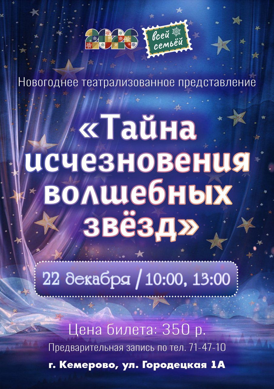 Дворец культуры шахтеров приглашает на новогоднее представление «Тайна исчезновения волшебных звёзд»